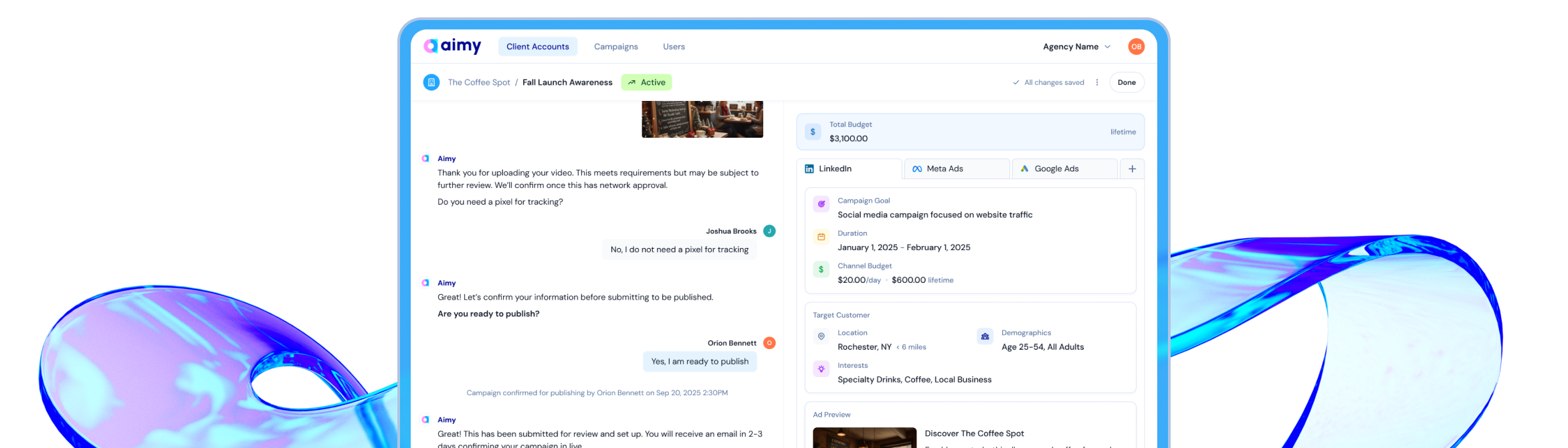 Conversational AI advertising technology designed for agencies and brands looking to scale revenue without increasing overhead, or looking to expand the scope of in house media teams. Spend less time on strategy and execution , keep pacing and performance on track, and protect your margins.